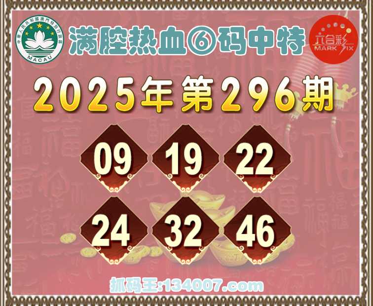 296期:《满腔热血》 🏆⑥码中特🏆【09.19.22.24.32.46】开:22准